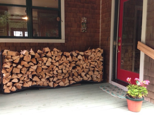 It was a good show. On pancakes, batter breads technically, and lacy pancakes specifically. That, and a (finally) change in the hot weather to cooler and grayer days (thank God) prompted me to split a few last rounds of firewood, sweep off the porch, and set up the wood rack for the winter.Of course, stacking wood lead to freshening the chicken coop (all the clean sawdust in the wood pile from sawing up the logs shouldn’t go to waste) and that lead to washing curtains.