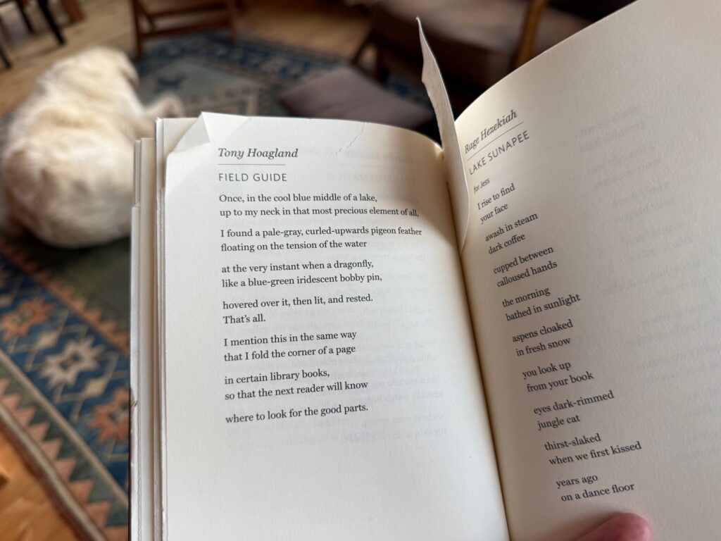 While this poem may not make you laugh out loud, it will make you smile– unless you are a librarian. (Yes, I fold corners, too.) It is in the collection titled The Wonder of Small Things: Poems of Peace and Renewal edited by James Crews. I keep that book and others close, because every morning I do my best to say my prayers and read a few poems first thing, rather than checking my phone for the news or messages and emails. In my favorite everyday books one page leads to another in a peaceful way that Google searches never do.