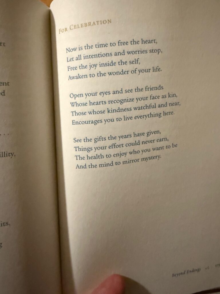 Also, since it is the last weekend before Christmas, here is a blessing “For Celebration” from John O’Donohue to help put you in a mind to celebrate: