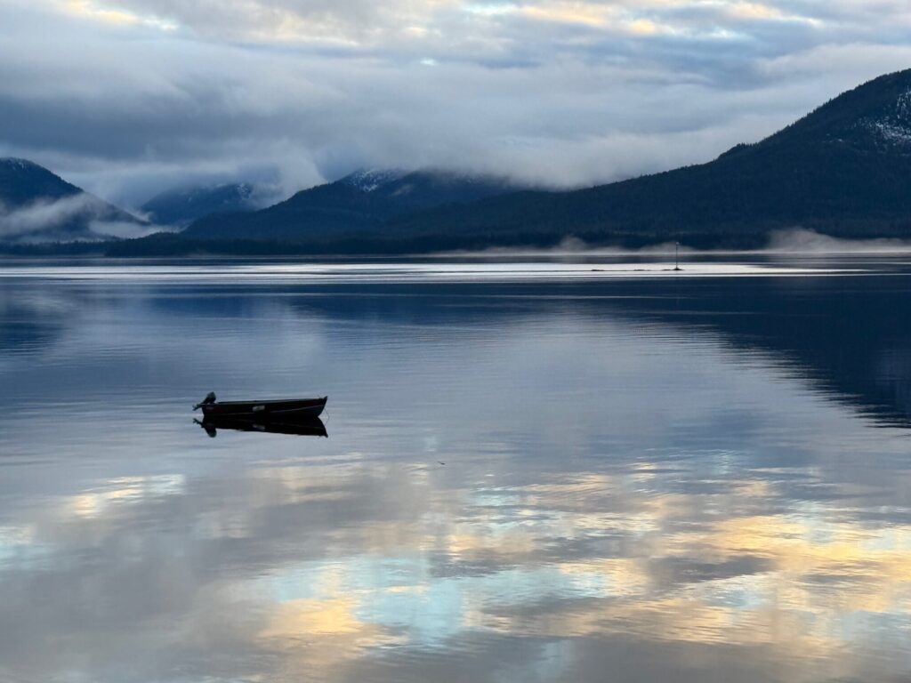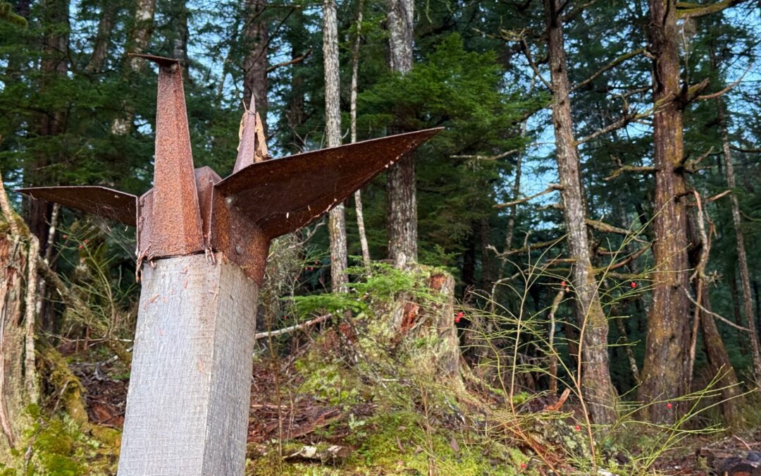 On the way back, we stopped at John’s grave at the edge of the proper Tenakee Cemetery. I never met John either, but I have held the box of his ashes. I am great friends with his widow. They traveled together to Japan to visit the atomic bomb memorials and John was so moved he decided to devote his life to peace, not in the grand Nobel Prize way—in the possible for a schoolteacher from Juneau with a family way. He learned to make paper cranes and gave them away. Thousands of them. He kept origami papers in his wallet and folded them everywhere he went, every day. He left tiny ones with the tip at a cafe. Gave them to the purser on the ferry, the kids on the trail, the nurses at the hospital. John actually created a little peace and passed it on. Imagine that. I mean, just imagine that-