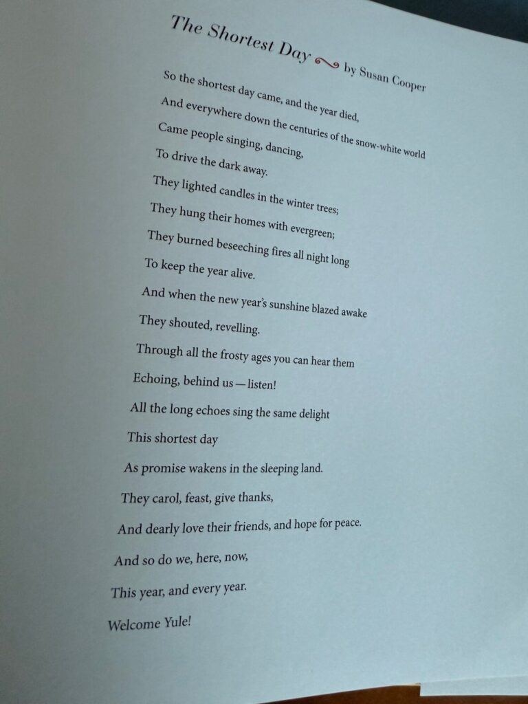 The great good news is that I wanted you to read this poem at the solstice, The Shortest Day, by Susan Cooper, but I couldn’t fit it in, but now, being of very good cheer—I give it to you—