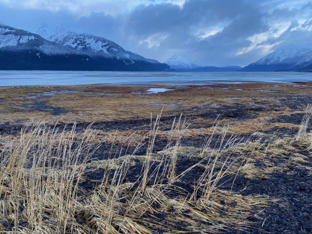 Dec. 8, 2:30pm, Chilkat River Beach. Windy! 35 degrees. Rain, flurries, then rolling clouds.