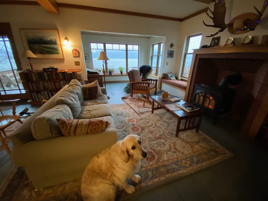But, well, my friend Beth had a party to go to, and Chip decided to put up the Christmas tree before the real storm gets here tomorrow. I moved furniture and vacuumed and made the kind of mess you do when you prepare a space for the tree so your husband can drag into the house, and then cleaned up afterward, and was a bit grumpy about it. The house feels too crowded already and now we hauled in a tree, and I had not planned to do this today. The dogs weren’t keen on it either.