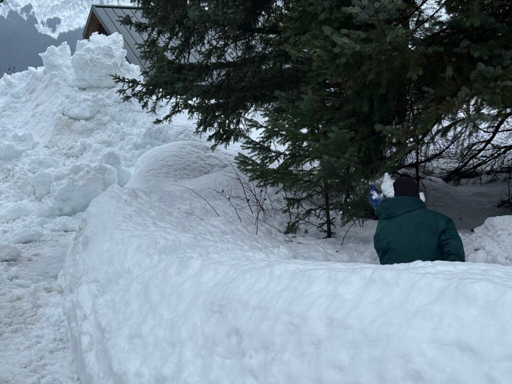 I would have kissed Lyle if I was in the studio with him when he gave the Safety Talk on KHNS. Well, I would have liked to, but I’m a tad more reserved than that, still, I might have hugged him. My volunteer fireman retired teacher neighbor does not use words like mindfulness, presence, or self-care. I’m pretty sure he doesn’t do yoga. But he could surprise me. He plows snow with the same tractor he tills his tidy garden with. As I drove home from town, there he was on the radio, reminding us all that it has been a hard December and January. Bitter cold, five– or is it seven feet of snow? And now this week, pouring rain and those really big winds. It felt like a hurricane (down at the Eldred Rock Lighthouse they peaked at 83 mph.) Avalanches blocked roads, and ferries and flights were canceled. We dug out the buried culverts.