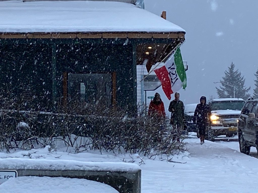 I always feel good vibes in (and after) yoga. I’m happy it’s snowing too. That feels right.– And for Robert from Howsers IGA who carried the groceries to the car in the snow without a coat on, and said it was his pleasure. When I got home, Norm was on the radio volunteering on the country show and talking about banana beer in Uganda. He said it is 13% alcohol. (Now you have an answer in case they ask this next time you are at Trivia Night at the Pioneer Bar.)