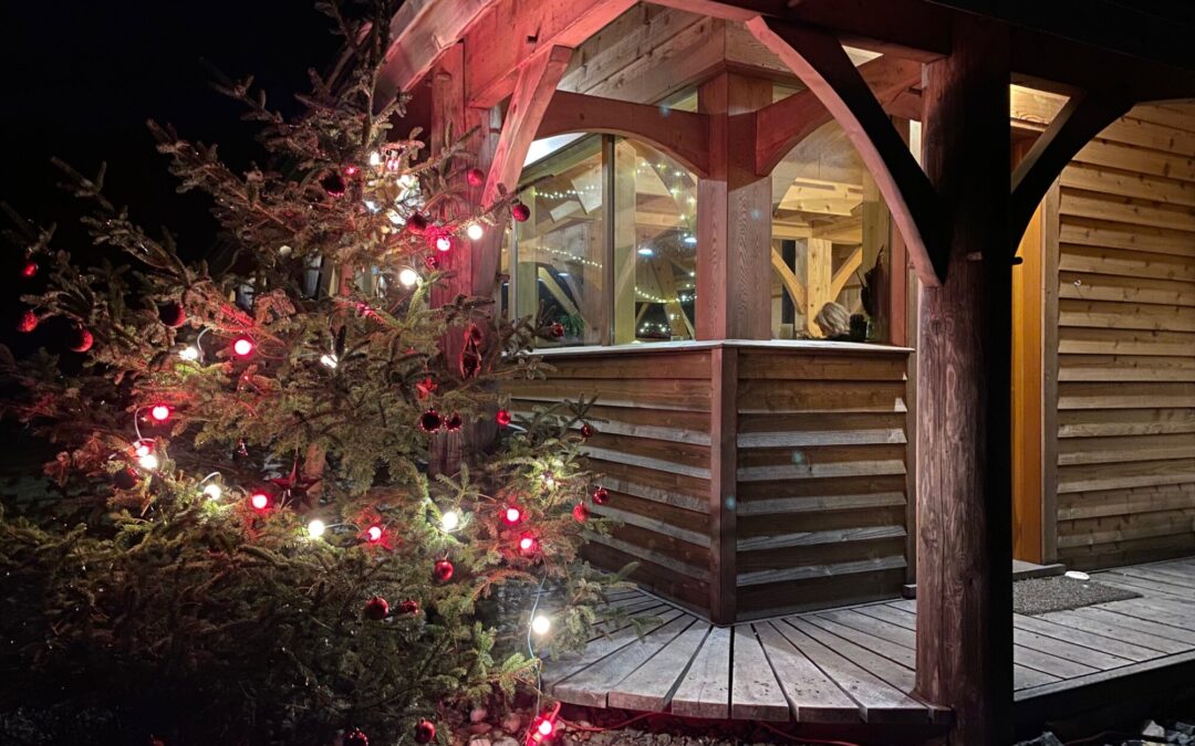 I am just home from a family party down the road at Beth and Gregg’s lodge at the Chilkat inlet Retreat. As soon as I finished washing the potluck pans I told my daughter I better get to blogging. I am pretty tired (I did a radio show this afternoon,and bought a 30 lb turkey for Christmas that is thawing in the fridge in the garage.) I may miss a day, I said. JJ said, ” Make a postcard. Say something like ‘ it was magic tonight.’ That will be fine. They will understand, and it was magic.”