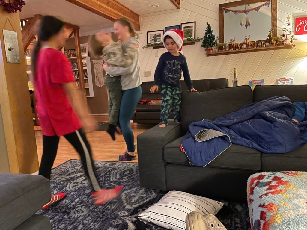 I told Caroline that since she is the oldest of 12 cousins she may be asked to watch the little ones a lot ( and because she is so responsible)- but she doesn’t have to. Boundaries are important–so we agreed on a secret signal when she has had enough. “The eyebrow” it’s a thing my sister Kathleen does, and that her mother Sarah also does, and that CC knows too– it’s a one eyebrow arch. Tonight, after dinner when it got a little wild before we started Home Alone Two I made sure to check in with her — but she was fine and laughed twirling all the little ones much to their delight. ( And no one threw up and no one got hurt.)