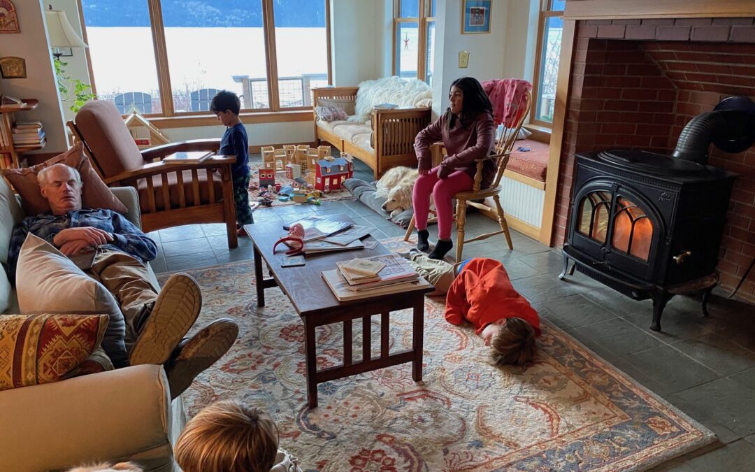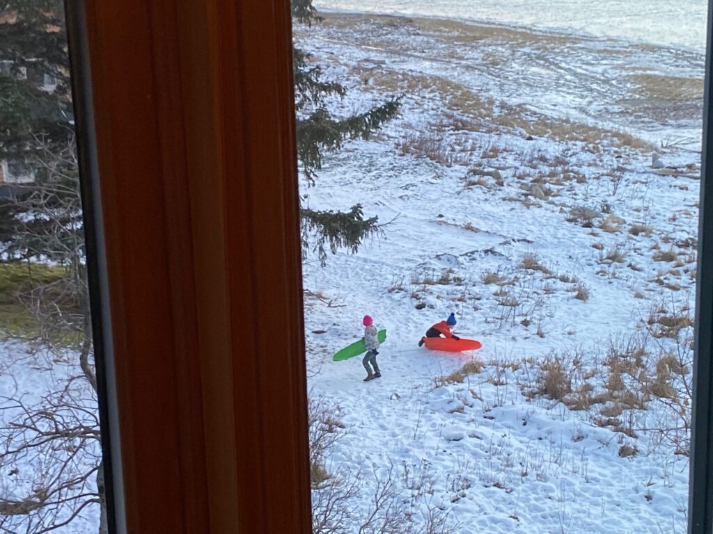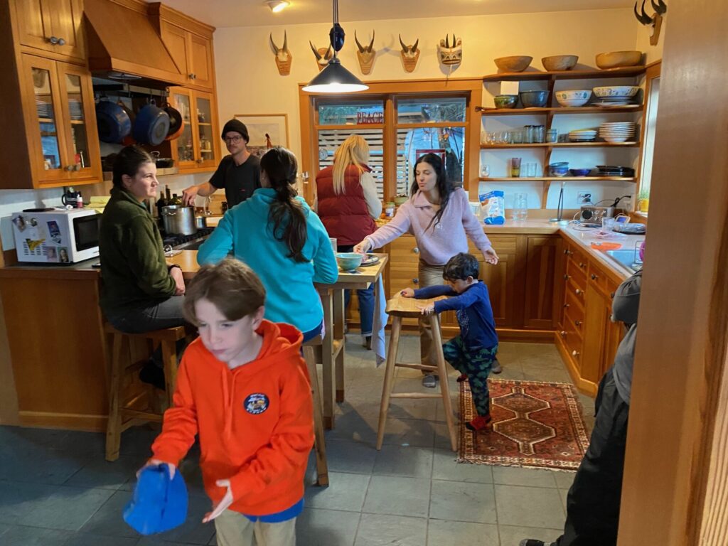 After that, the day ran wild with kids charging in and out in the bitter, but beautiful cold.”Shut the door!” “Put a coat on!” I spent breakfast and lunch as a short order cook, basically, because of the sleep/ travel adjustments and happily so. Then I just moved out of the way. JJ thought we needed a bigger coffee pot and found one above the garage, but no one could the find the right filters. The Aussie boys loved sledding on the icy slope to the beach but kept forgetting to put on boots and coats. The furnace quit “There’s no hot water and the third floor is a tad chilly,” but Chip called Bob the plumber and he came even though it was Saturday and repaired it. (It needed a new pump.) The woodstove does most of the heating, but the babies and the dogs like the warm radiators upstairs. The kids’s friend Teslyn came by and everyone went for another brisk walk on the beach.