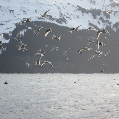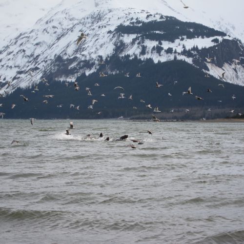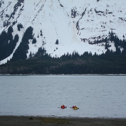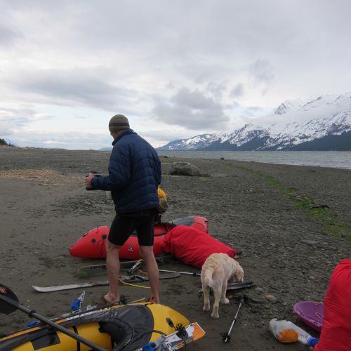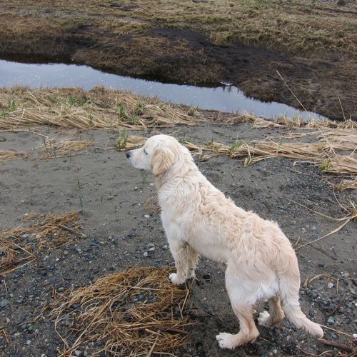 Every morning I listen to the news on the radio and scan the Internet papers to find out what’s going in the world. Pearl gets the first news of her day from the sights, sounds, and smells of our morning walk. (Part of it, I suspect, is Pearl’s aristocratic pedigree, her father was English, so she thinks she is the Duchess of the Chilkat and responsible for the well-being of her people, animals, and land.) Well, it has been a news-filled weekend. On Saturday morning Pearl got to send off Jess and Kevin as they embarked on a three week paddle, ski, and hike from here to Dry Bay via Glacier Bay. (We saw them just as we were getting ready for a bike ride, and Chip figured they’d like some hot coffee before they left, and he also gave them a baggie full of black bear pepper sticks which they added to their ample kit, figuring a bit of bear would help them climb over the mountains.) Yes, they are serious adventurers and it will be an epic trip. In addition to all the usual news– playing with the judge and his three Bernese mountain dogs, Johnny and his dog Dolly on their daily rounds, and JR and Sabine’s retrievers Toby and Shelby– Pearl made regular checks on the kids and baby next door, all that fresh dirt in Fran’s garden on the other side of the yard, found a dead duck in the tide-line (what happened?Maybe an eagle dropped it?), inspected the now clean chicken coop waiting for new chicks, and was shy of the welcome rain (what is that? Pearl is a winter puppy and spring has been very dry so far. Now it is suddenly so green)- if that weren’t all enough, we got to witness a crazy feeding frenzy last night with hundreds of shorebirds diving and calling, and dozens of splashing seals and roaring sea lions. It was a lot like the hooligan run, but too early, so we suspected they were dining on herring. Needless to say, there is a lot going in Pearl’s world at the moment. In our world, Nancy Nash’s older students have a voice and piano recital tonight at 7:00 at the museum, and looking ahead to a busy May weekend, the home track meet is Friday and Saturday, the community clean-up begins Saturday with a kick off at the bank at 11:00, and includes a picnic for all picker-uppers until 3:00, the watershed council is doing a Chilkat River clean-up, meeting at 9:00 Saturday at the their parking lot, lunch is provided, and HARK community pooper troopers muster at 1:00 at the kennel on Small Tracts Road. I’m afraid we will miss the good clean fun, as JJ graduates from UAA this weekend and we’re heading north to be proud parents of our fourth college grad. (Phew.)