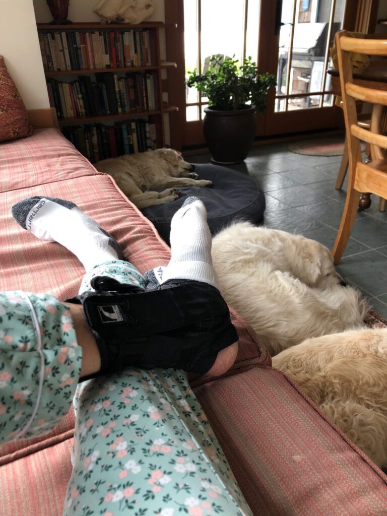 I told Chip that I can’t figure out what I did to my ankle aside from the usual activities. He blamed the way I make the bed. Papa Bob always said you should be able to bounce a quarter on a well-made bed. I never made one that tight, but I do tuck in the bottom, firmly. “You move all night, you probably caught your foot down at the end and wrenched it.”